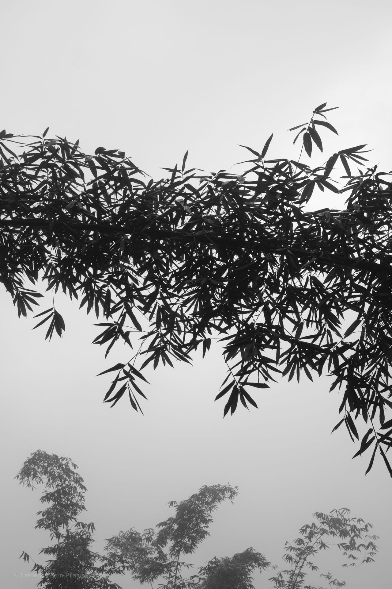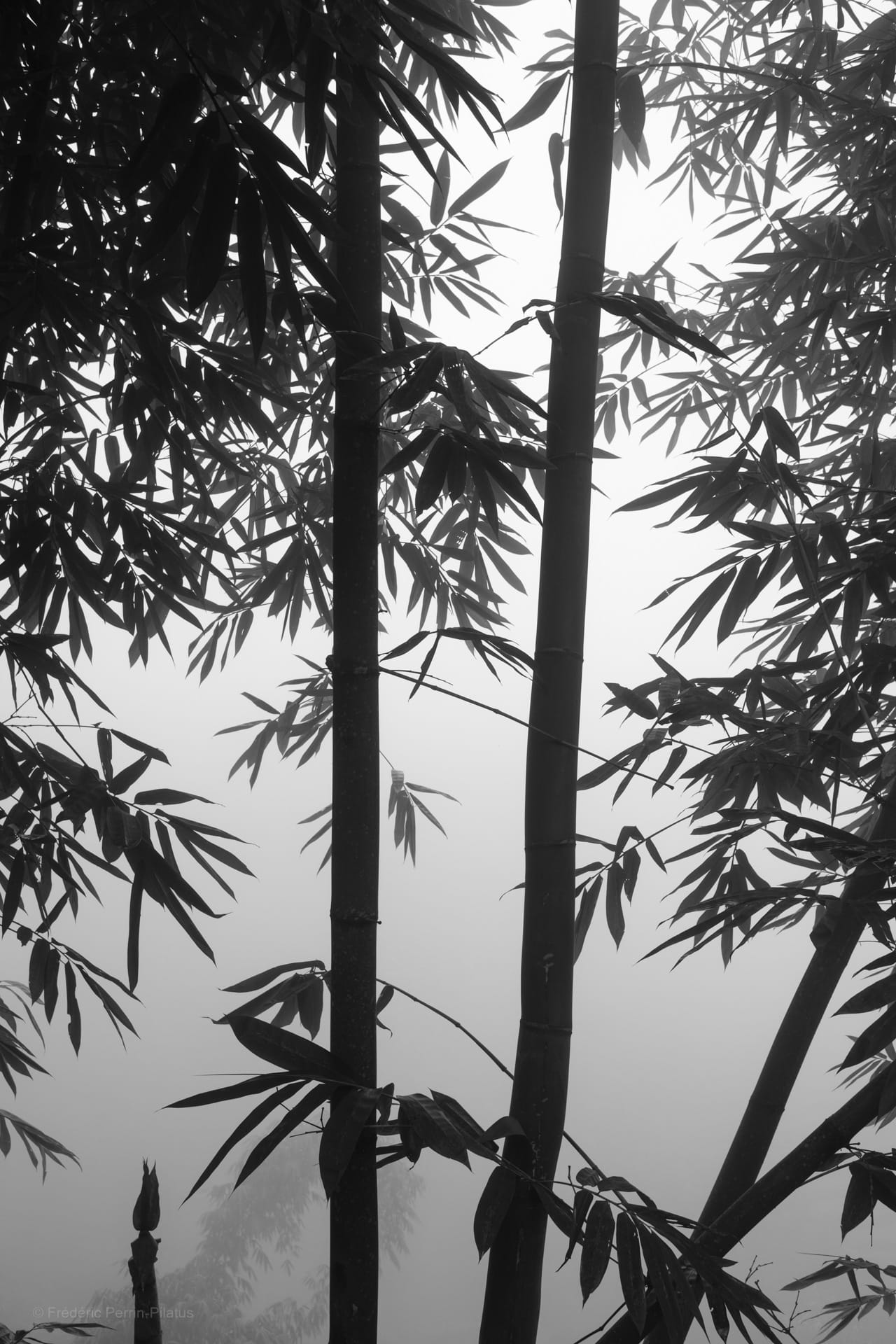 Voici deux photographies – avec celle de ma publication précédente – que j’ai prises récemment dans les montagnes au nord du Vietnam. Toujours ce graphisme sensible que le noir et blanc parvient à transmettre, pour ces bambous dessinés sur la brume. Une ambiance très minimaliste.