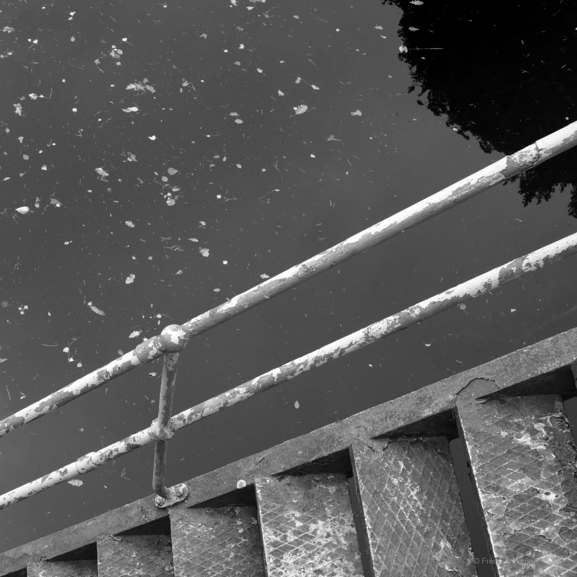 J’associe ces deux photographies en noir et blanc en diptyque, j’aime leur juxtaposition de contrastes et de graphismes. Elles datent toutes les deux de 2018, la première est du barrage de Pitlochry, en Écosse. J’ai pris la deuxième en Bourgogne ; seulement deux mois les séparent.