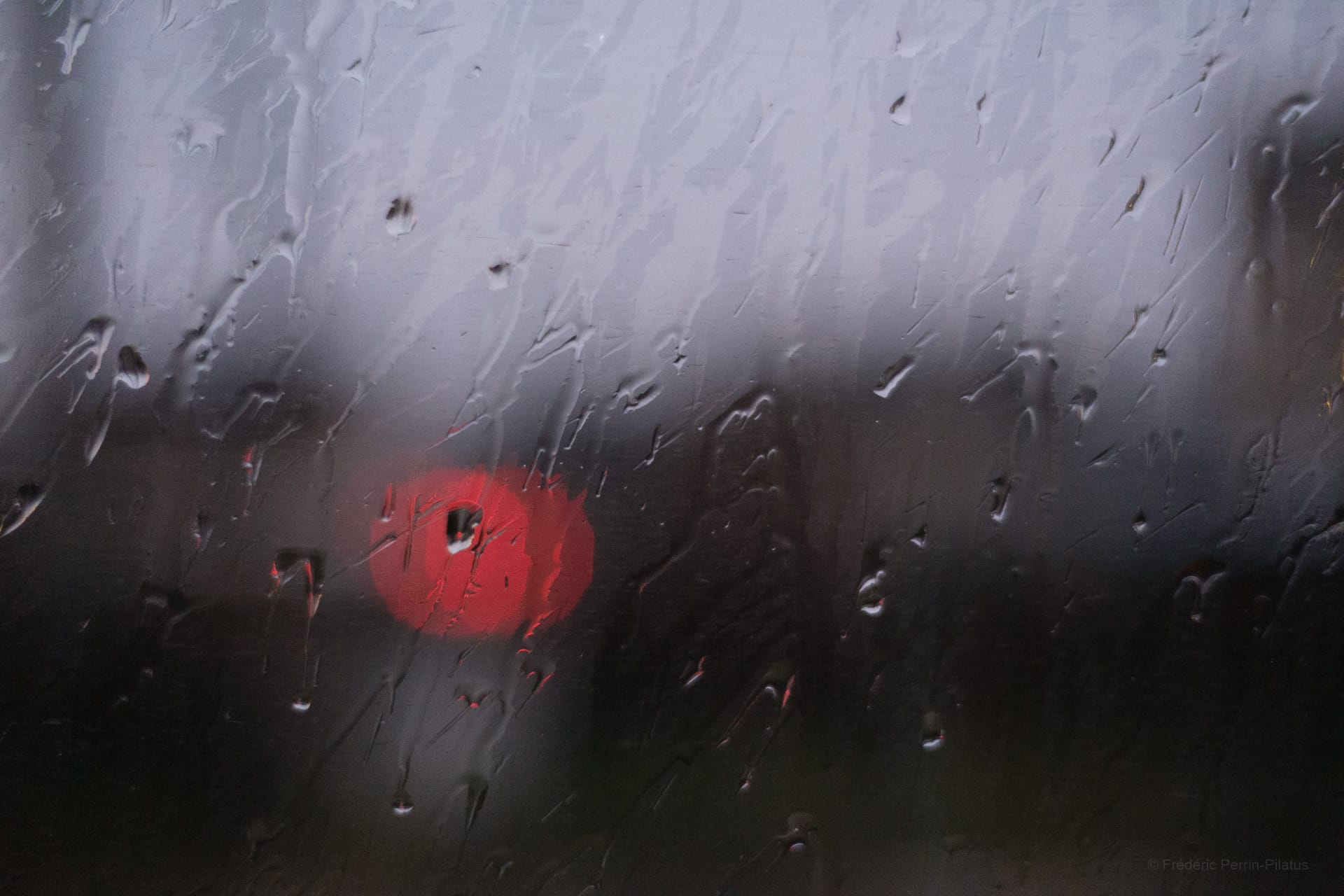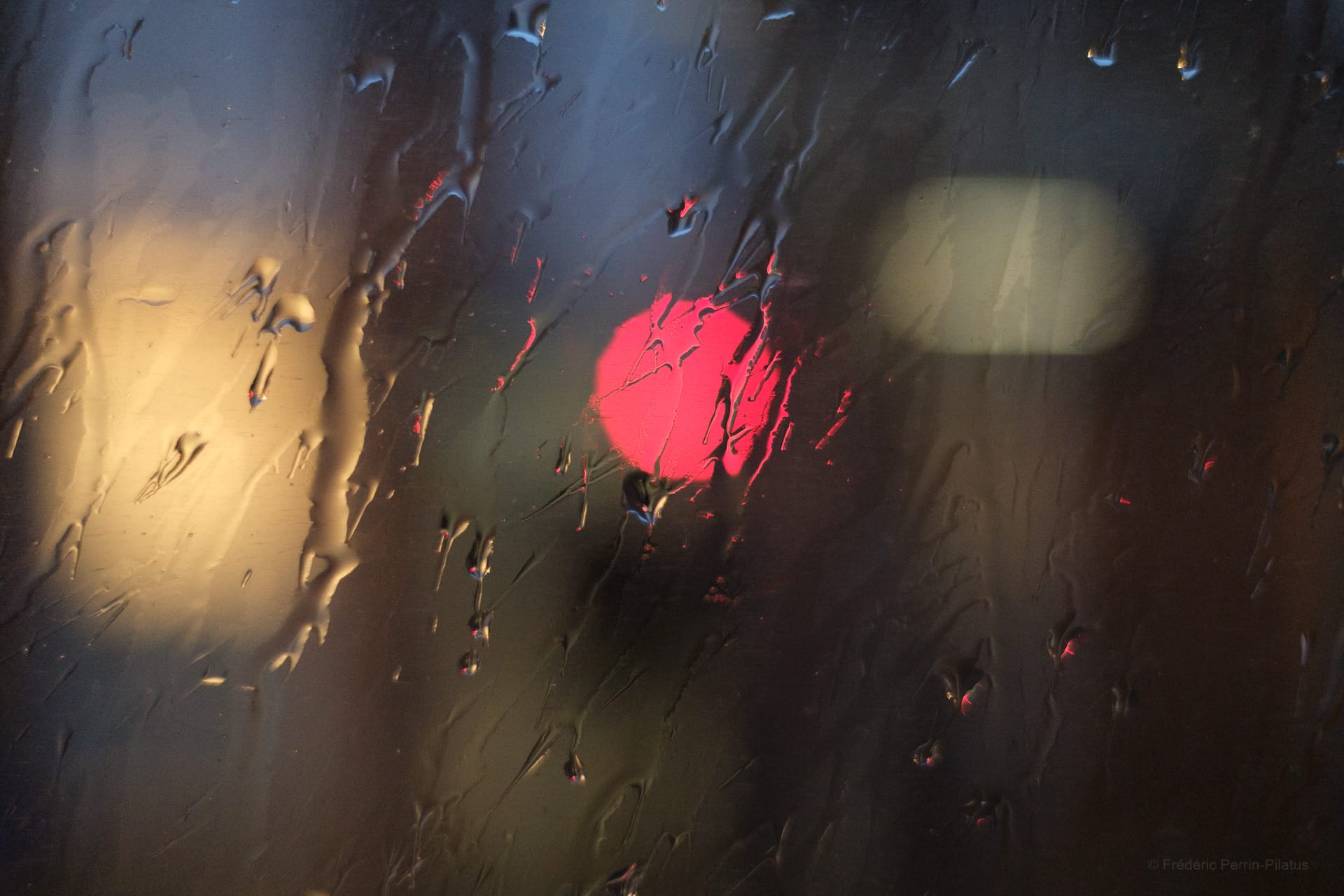 Sur le même thème que ma publication précédente, voici une autre photographie que j’ai prise lors d’un voyage en train. À travers la vitre et la pluie, la ville devient une impression diffuse de formes et de couleurs.